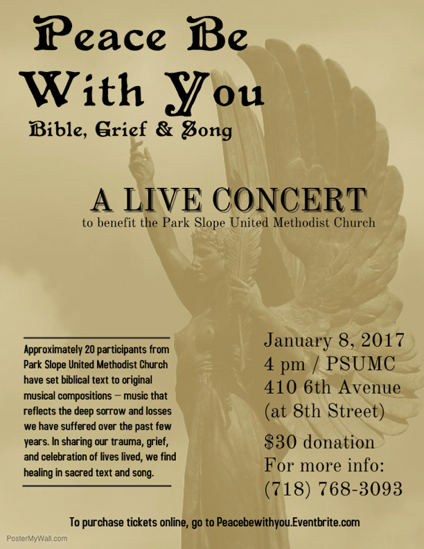 Peace Be With You: Bible, Grief and Song began in response to the death of Jacob Vogelman in Hurricane Sandy, where Kathryn composed “Jake’s song” to the biblical text of Jacob’s Ladder in Genesis. This project of matching one’s source of grief to a sacred text gathers an ensemble to compose and share their songs within a faith community. Over 15 songs have been composed and shared through this collaborative process.